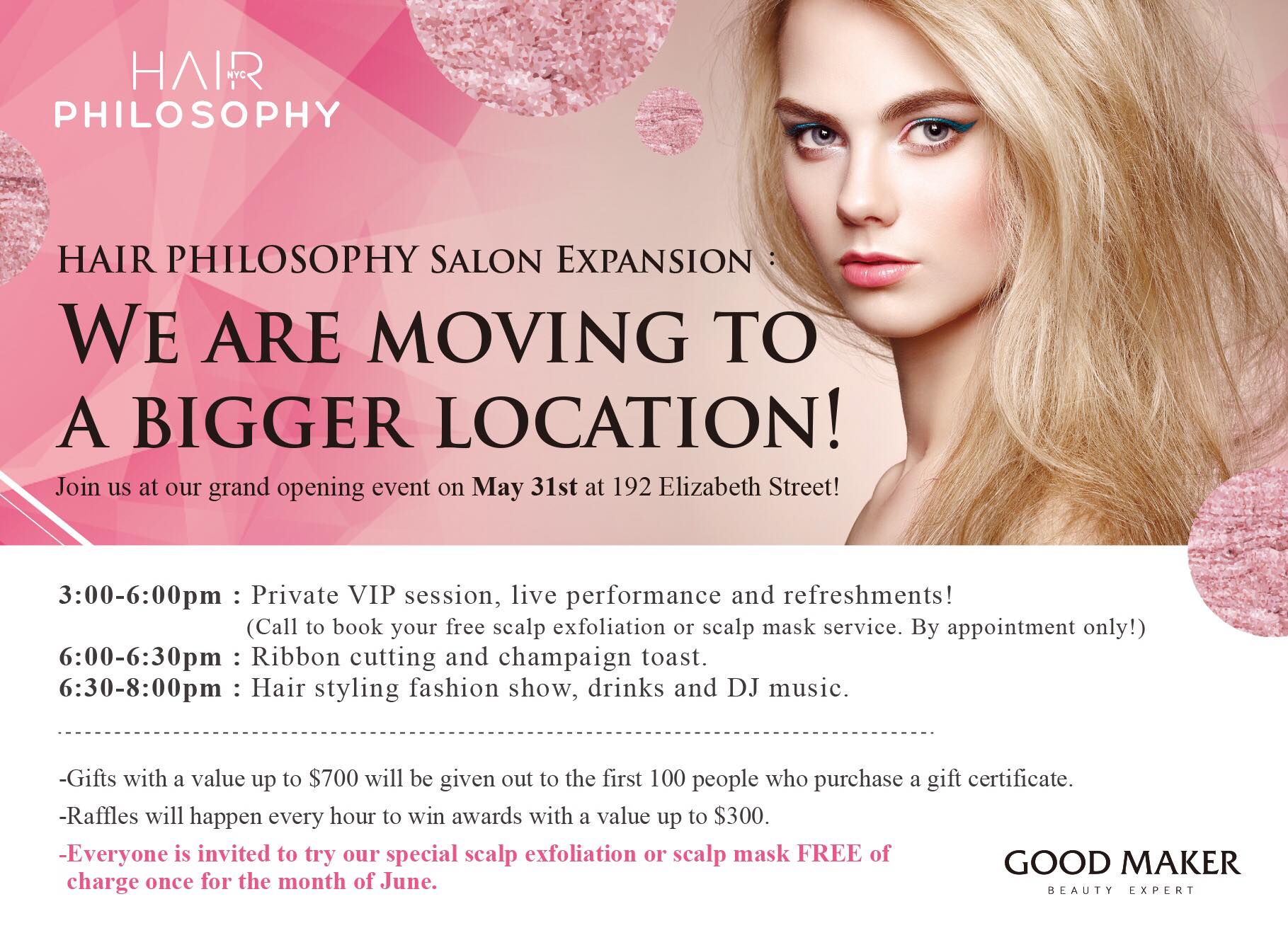 This past year, Hair Philosophy has been working on improving our salon image and business services. We are proud to announce that we have now become a TOTAL BEAUTY salon. We are not only providing best services for hair and make-up, but now we also take care of your health and wellness. In our new and bigger location, we have a Nurse Practitioner on site to provide free services in giving you the best advice to maintain a healthy hair and also offer our clients free diagnoses of your scalp. Based on the assessment, we will choose a medical grade shampoo that best suits your scalp condition. We now also offer a top notch scalp treatment and head spa to help our clients maintain the healthiest hair and thus improving your mood and wellness. In fact, all of our staff have been receiving extensive training in providing the best scalp and hair treatments for over 6 months now. It’s our belief that at Hair Philosophy, we can make our clients look and feel their best!