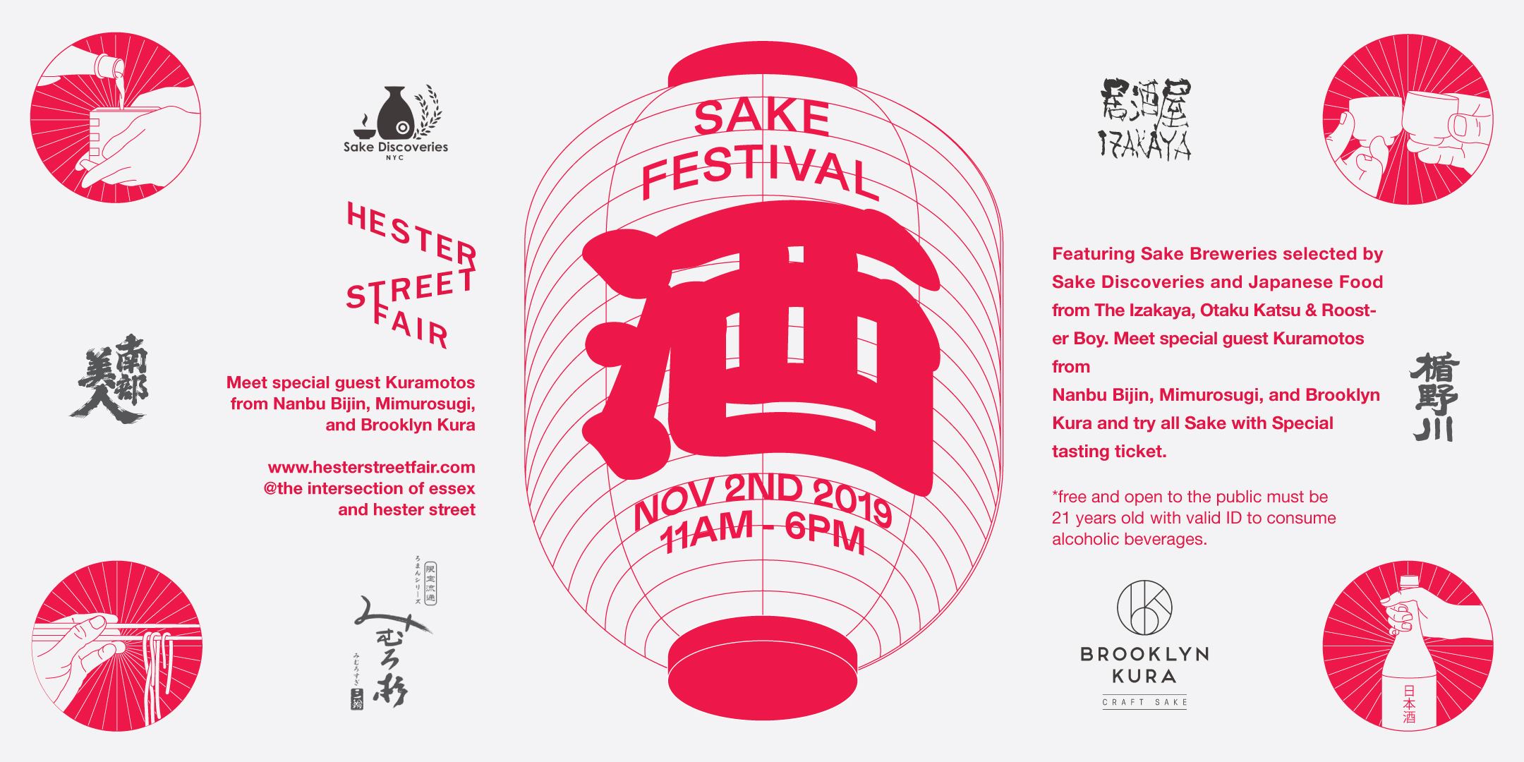 Hester Street Fair, Sake Discoveries and The Izakaya are proud to present our first annual Sake Festival featuring the best sake breweries from Japan alongside a variety of Japanese food and other unique vendors! We will also be welcoming Master brewers from Japan pouring sake for you.