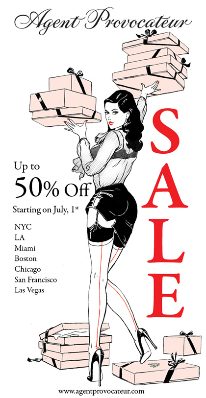 Agent Provocateur will be having a summer sale starting Thursday July 1st in their NYC, LA, Miami, Boston, Chicago, San Francisco and Las Vegas stores.