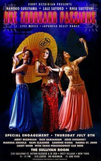 Our events at the Sullivan Room have provided me with the opportunity to showcase the very best talent in Middle Eastern dance and music – as well as the unique interpretations of this culture by representatives of the diverse ethnicities of this genre. On July 9th it is my great honor to present Lale Sayoko, Rhia Sueyoshi and Nahoko Sugiyama – … See Morethree remarkable Japanese dancers in an evening of belly dance artistry unlike anything ever witnessed anywhere in the world. In addition to our eight member ensemble, I am also thrilled to announce that we will be accompanied by Kae Reed – the renowned percussionist who will be performing with us on the taiko (traditional Japanese Drum). There are going to be a lot of surprises planned for this exciting, unprecedented and historic event.