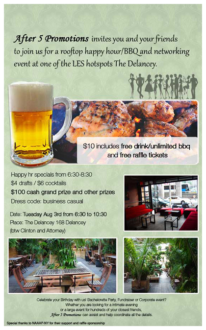 Event Description: After 5 Promotion invites you and your friends to join us for a rooftop happy hour/BBQ and networking event at one of the LES hotspots The Delancey.