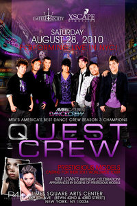 Before becoming MTV’s America’s Best Dance Crew, Season 3, Quest Crew’s energy and charisma captured the attention of audiences with their numerous crew and individual performances on American Idol and So You Think You Can Dance? On ABDC, they entertained their way into the homes and hearts of America, leading to a whirlwind of appearances this past year. Appearances include the motion picture The Squeakquel and dozens of coveted television, music video, and stage performances throughout the country. ABDC, Season 3 is now airing abroad and their popularity has already set them on course for appearances in Europe, Asia, and Australia.