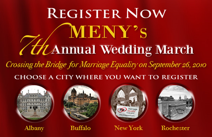 National Wedding Marches: At noon on September 26 near City Hall, thousands of New Yorkers will stand up for equality at the 7th NYC Wedding March – raising awareness about the 1,324 rights denied to same-sex couples families.